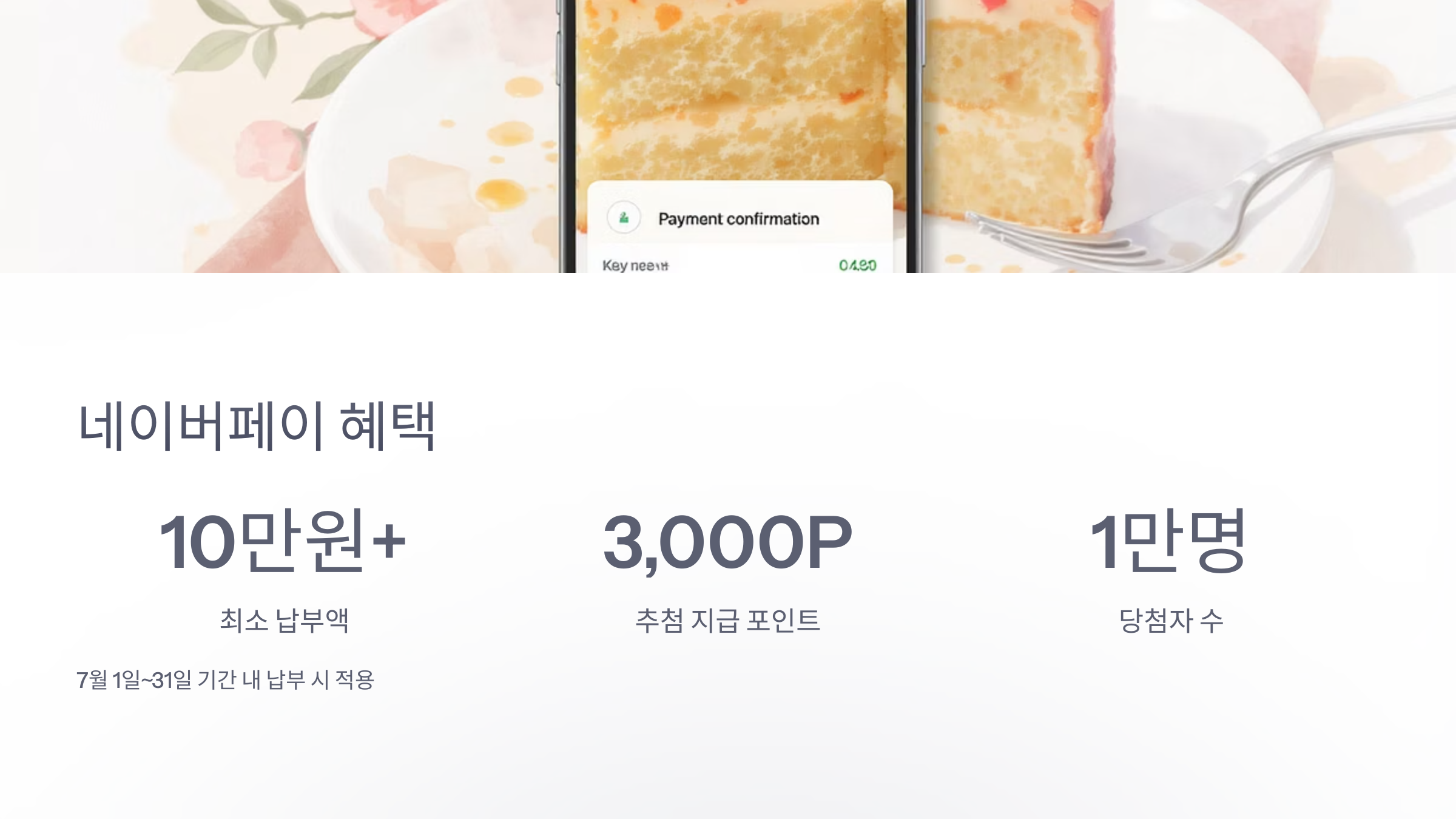 7월 1일부터 31일까지 네이버페이를 통해 10만 원 이상 지방세를 납부하면, 추첨을 통해 1만 명에게 3,000포인트를 지급합니다. 평소 네이버페이를 자주 사용하신다면, 이를 통해 세금을 납부하고 포인트 당첨의 행운까지 노려보는 것도 좋은 방법입니다. 다른 카드 혜택과 중복이 되는지 여부도 확인하여 더블 혜택을 노려보는 것도 좋겠죠?