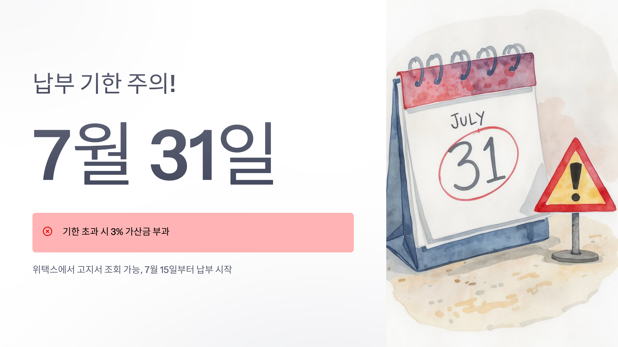 재산세 납부 기한은 7월 31일입니다! 기한을 넘기면 가산세가 부과돼요!