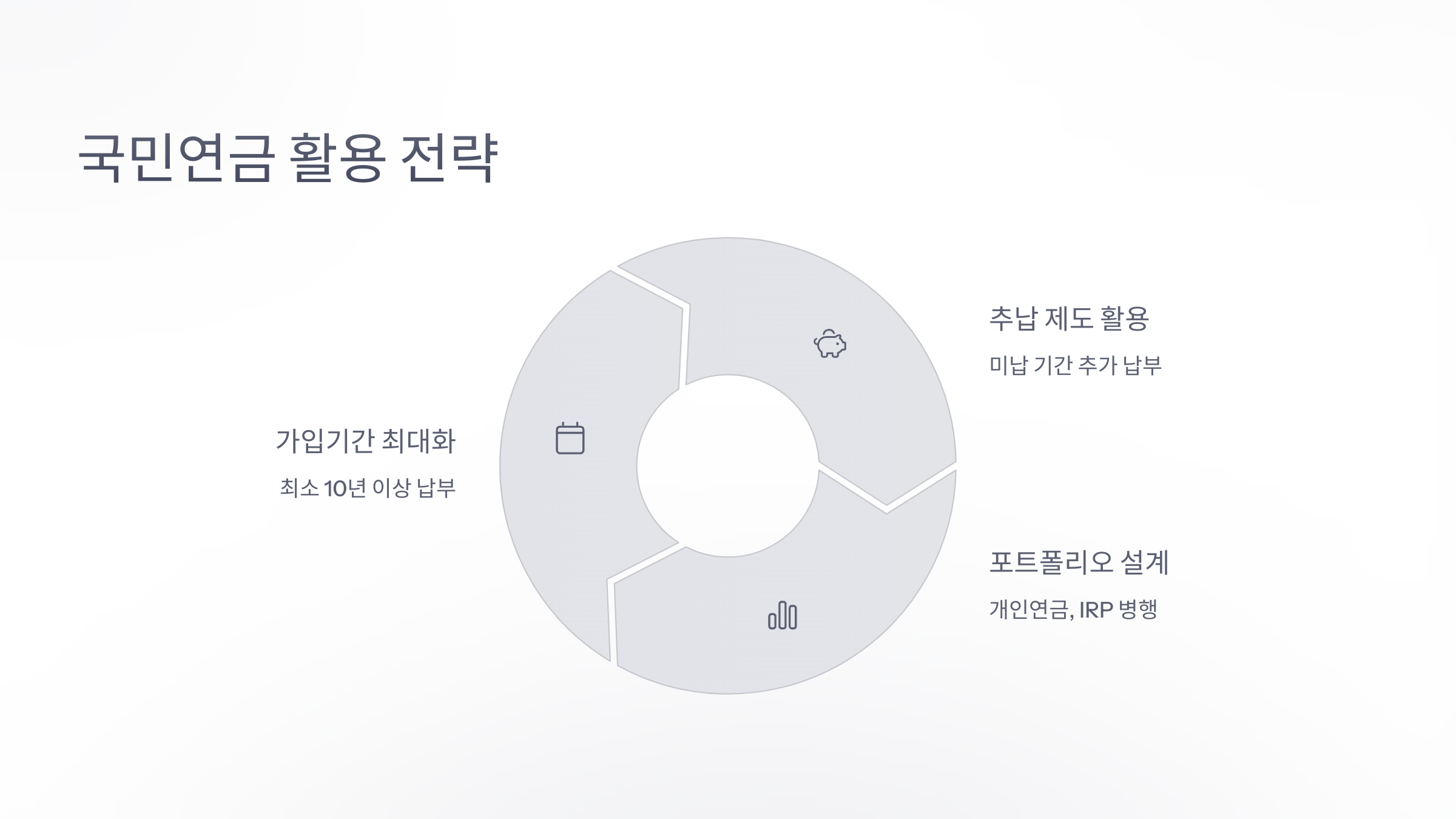 - 국민연금 외에 개인연금, IRP 등과 함께 구성