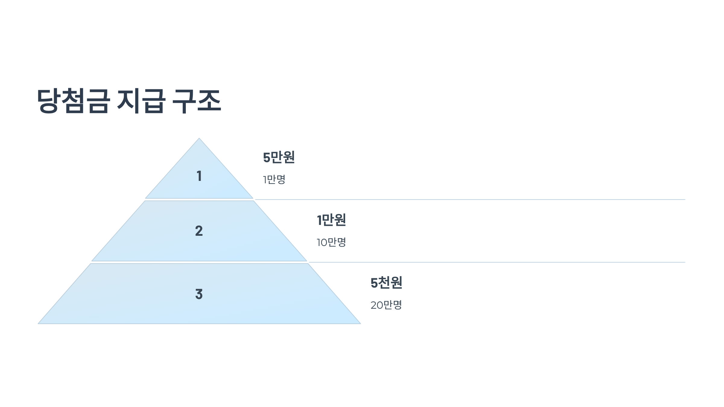총 25억 원 규모로 진행되는 이번 추첨은 카드사에서 공동으로 진행하며, 여러분은 복잡한 절차 없이 사용만으로 응모됩니다. 내가 받은 민생지원금을 어떻게 사용하느냐에 따라 최대 5만 원의 추가 혜택을 누릴 수 있는 절호의 기회인 셈이죠!