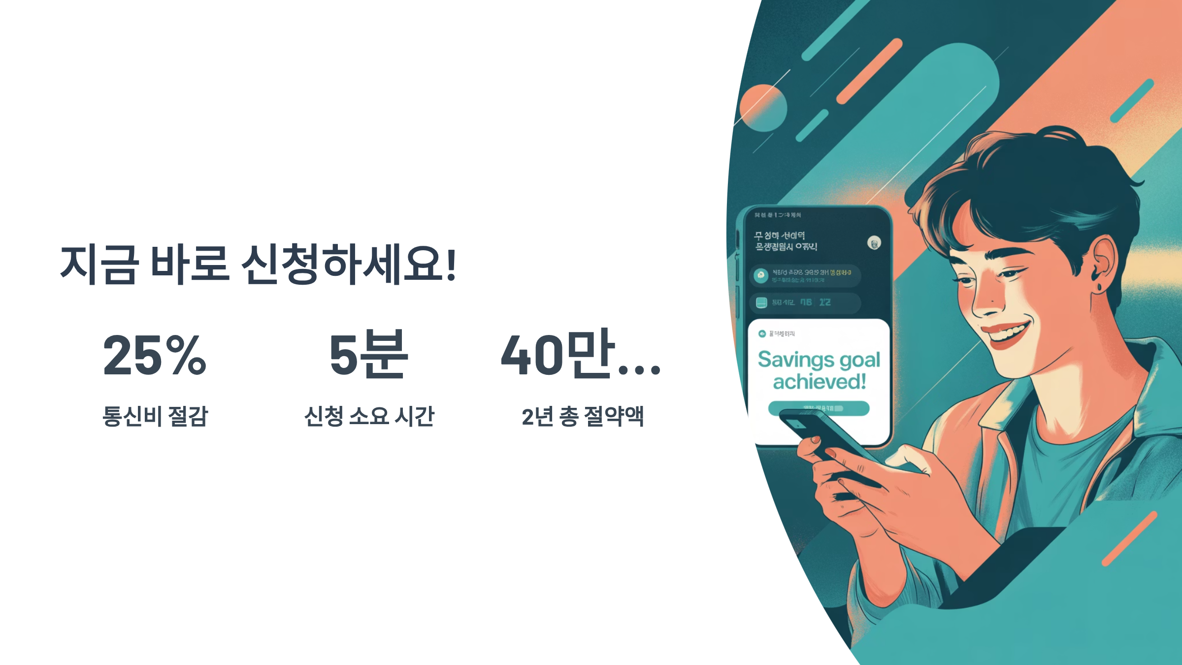 통신비는 매달 가계에서 고정적으로 지출되는 비용 중 하나입니다. 따라서 이 비용을 조금이라도 아낄 수 있다면, 1년 동안 무시 못 할 큰 금액을 절약할 수 있게 되는 것이죠. 특히 자급제 폰을 사용하고 계시다면, 오늘 알려드린 KT 통신비 25% 선택 약정 할인 방법을 꼭 확인하고 지금 바로 신청해 보세요. 몇 분만 투자해도 연간 수십만 원을 아껴서 다른 필요한 곳에 유용하게 사용할 수 있을 거예요.