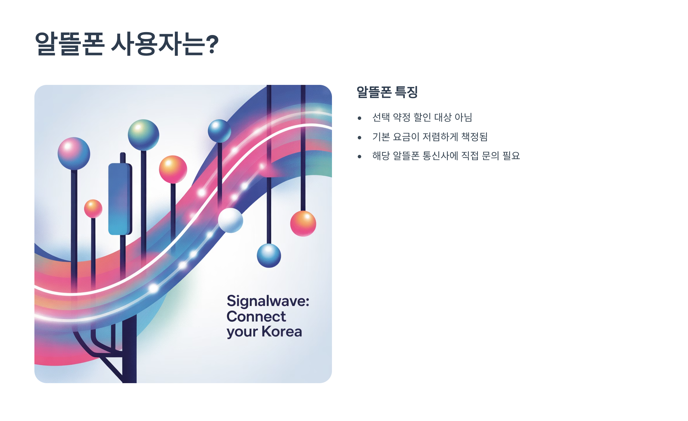 - 알뜰폰은 선택 약정 할인 대상이 아닙니다: 많은 분들이 헷갈려하는 부분인데요, 알뜰폰 통신사를 이용하는 경우에는 선택 약정 할인 제도가 적용되지 않습니다. 알뜰폰 요금제는 애초에 통신비가 기본적으로 저렴하게 책정되어 있기 때문에 이러한 약정 할인이 없는 것이 일반적인 정책입니다. 심지어 KT 망을 사용하는 알뜰폰이라도 마찬가지인 경우가 많으니, 알뜰폰 사용자라면 이 점을 정확히 인지하고 혼동하지 않도록 주의해 주세요.