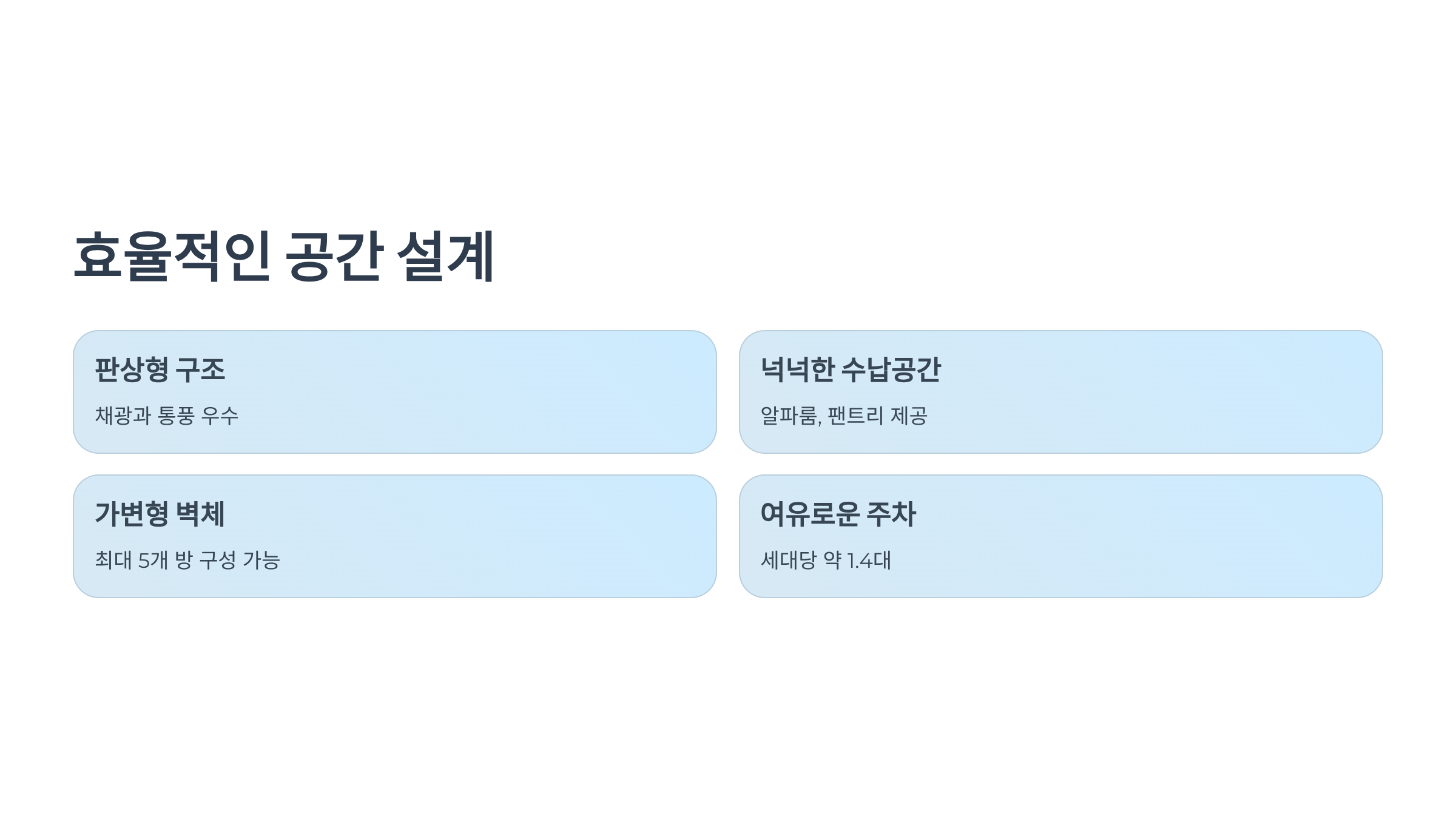 효율적인 공간 활용과 넉넉한 수납, 그리고 편리한 주차 공간까지!